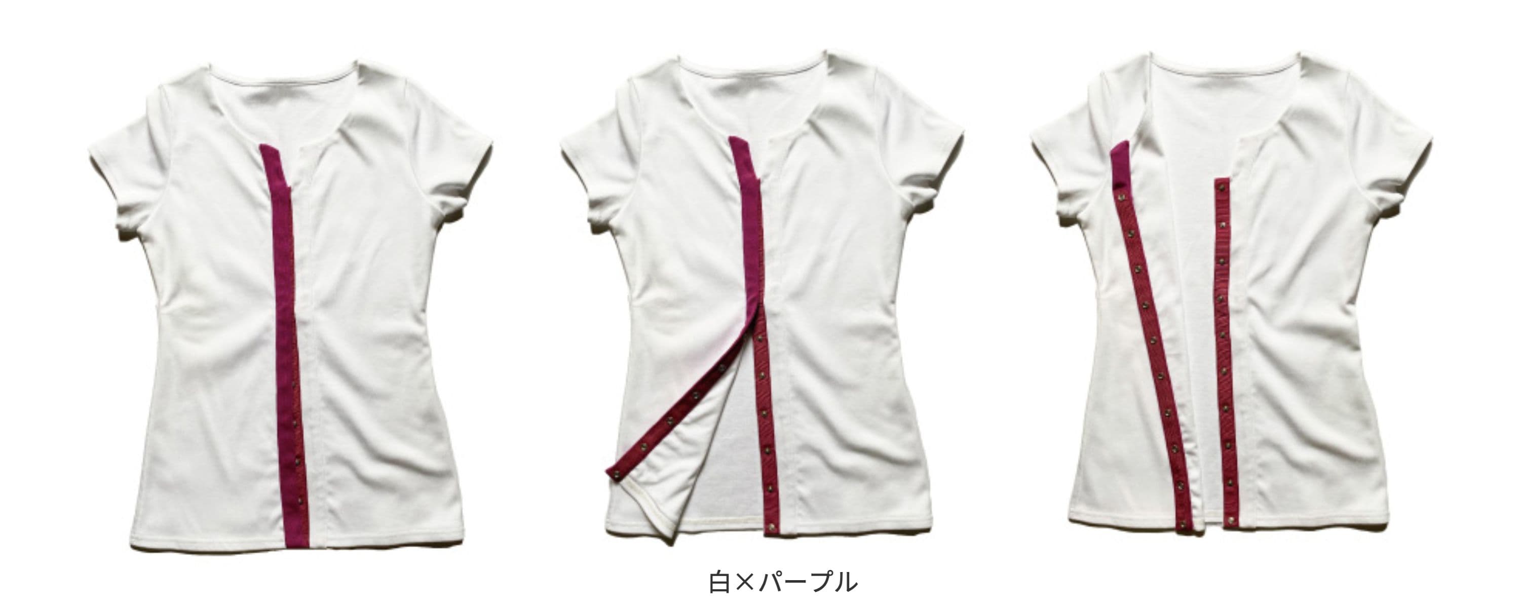前側の生地は、二重になっているので、センターのホック部分は肌に触れません。傷口が当たっても、擦れる心配がなく、白Tシャツは、下着の模様が透けないので、安心です。